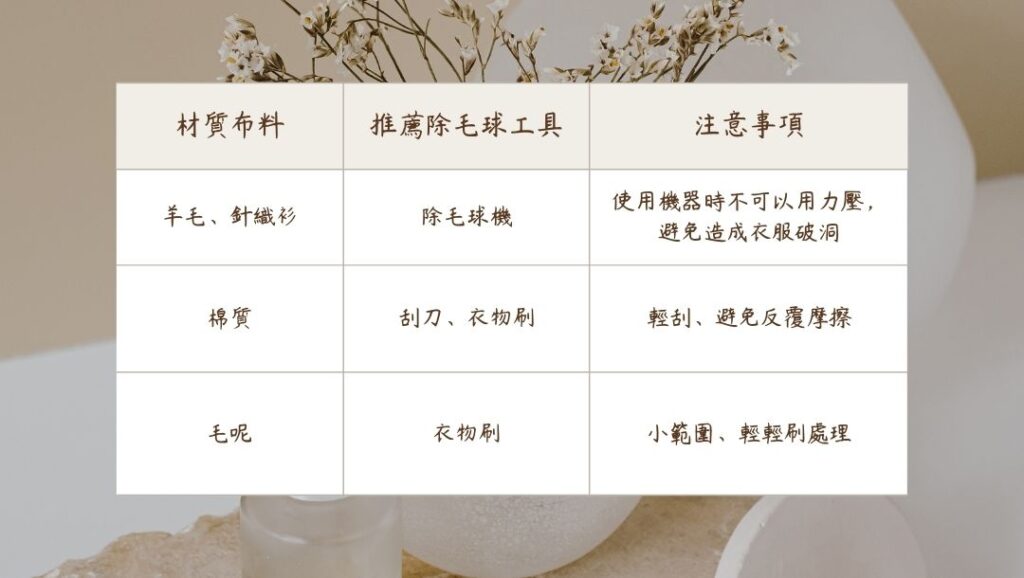 想要安全又有效地去除毛球,建議依照衣物材質選擇適合的工具: